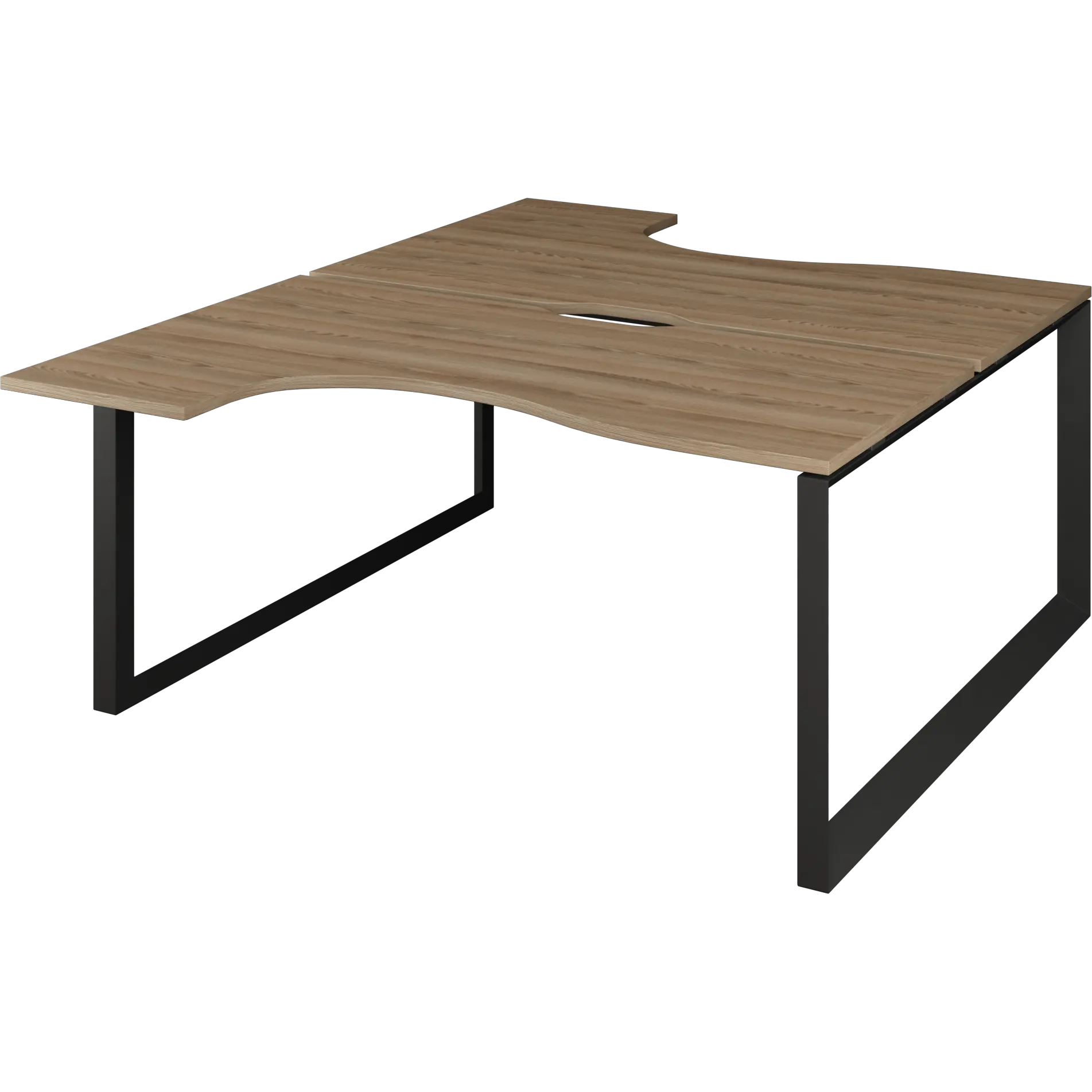 Бенч эргономичный на 2 рабочих места на металлокаркасе НТМП.О.Б2-060 Дуб сафари/Антрацит 1600x2036x750 Аргентум-МП