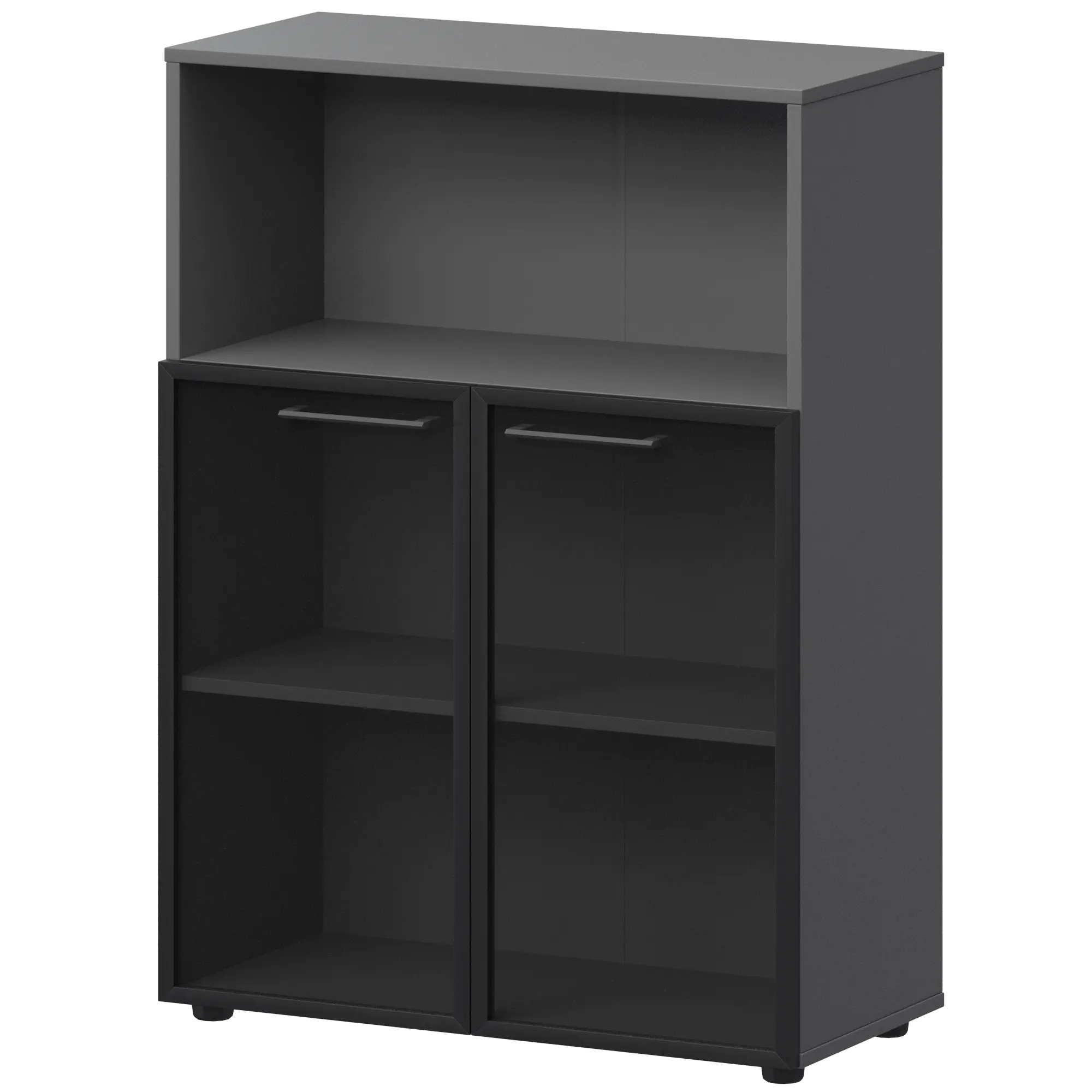Шкаф средний с нишей со стеклом в ал. рамке СМШ38.28RS Графит 792x380x1190 Кортез